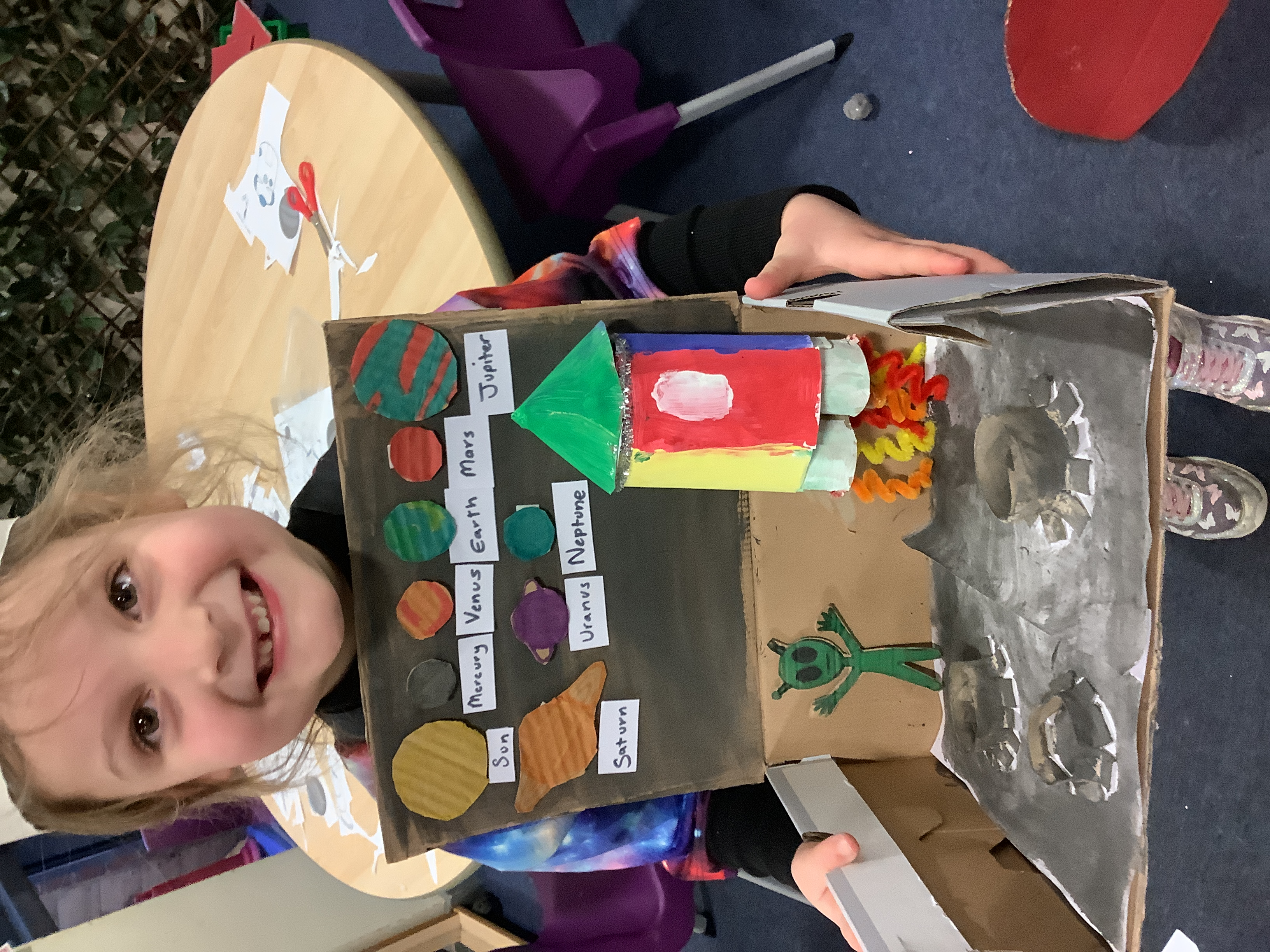 This term the children have been learning all about space. Today we enjoyed a very special space day. The children all came in dressed as astronauts, aliens, planets and stars. We even had some amazing spaceship and moon outfits. The children have also worked incredibly hard at home creating fantastic solar systems, rockets, moon dust and aliens. Well done everyone!